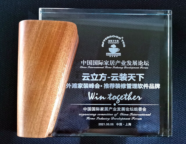 會(huì)上,云立方榮獲「外灘家裝峰會(huì)·推薦裝修管理軟件品牌」。